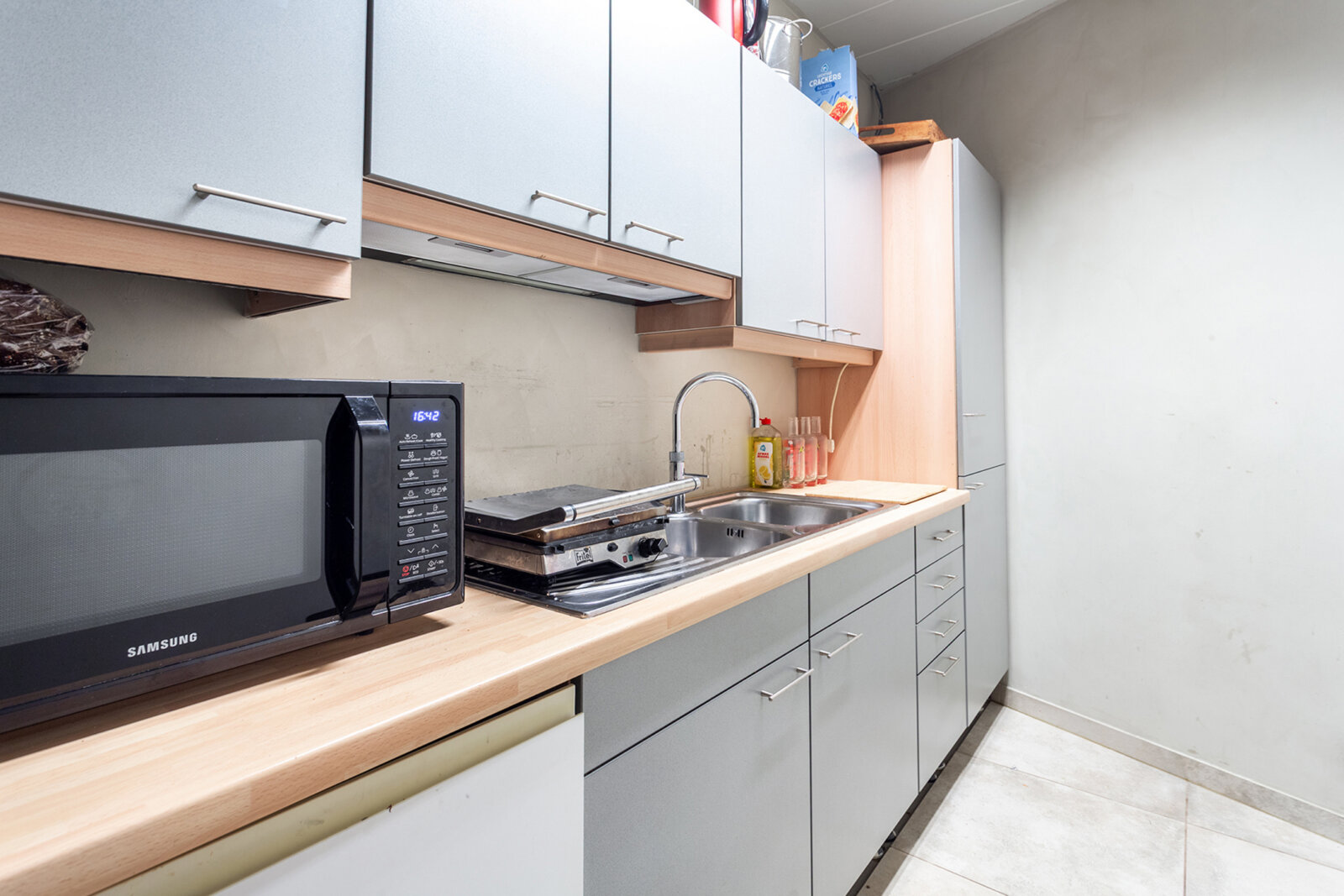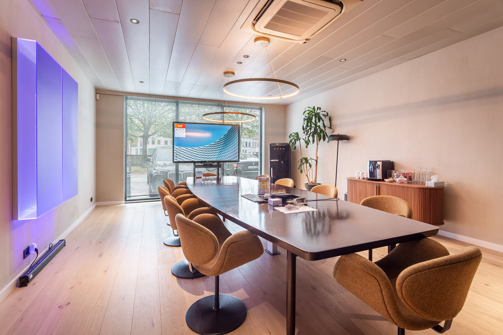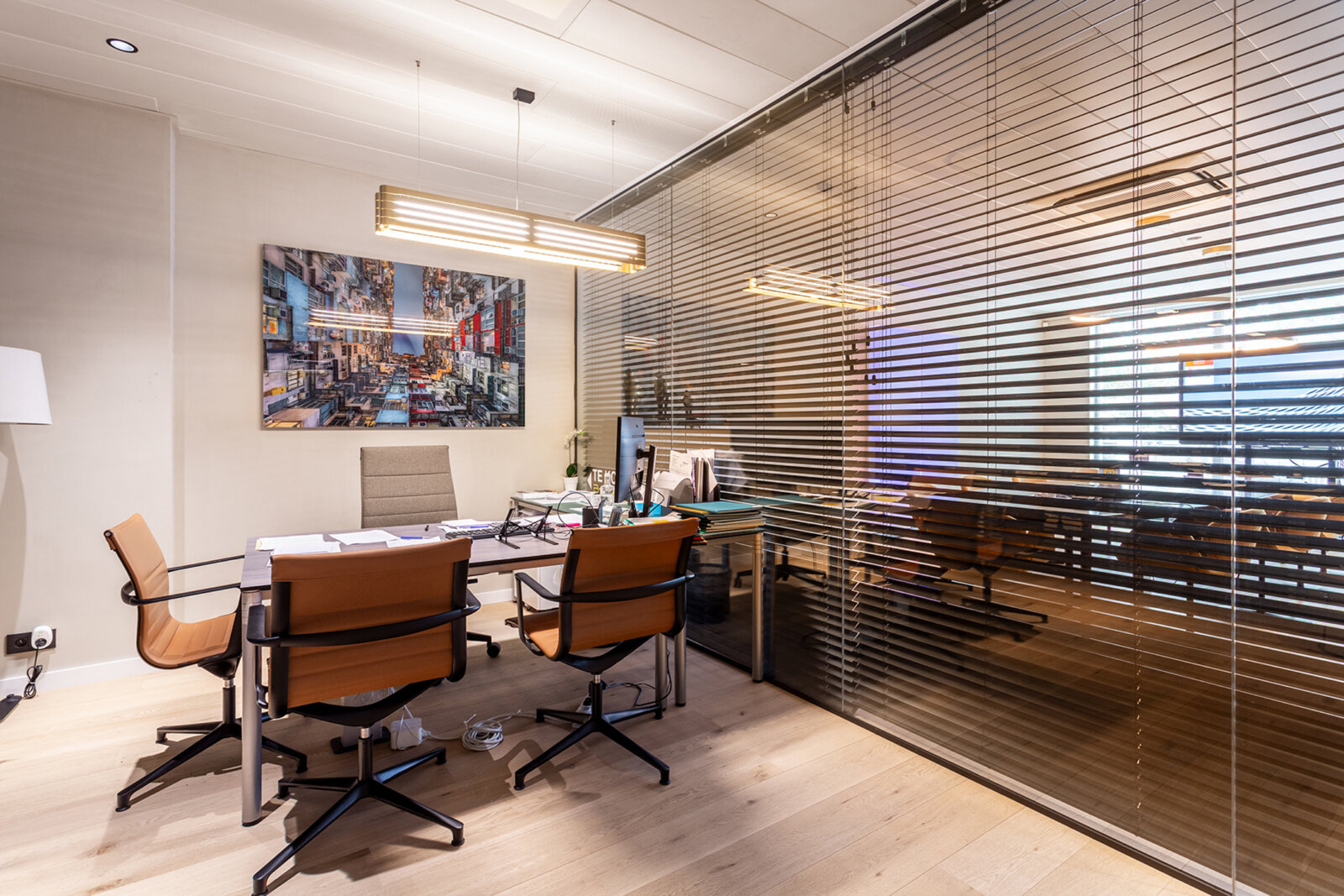 De gelijkvloerse kantoorruimte van circa 200 m² werd volledig vernieuwd en omvat een onthaalzone, open kantoorruimtes, een aparte vergaderzaal en sanitaire voorzieningen.